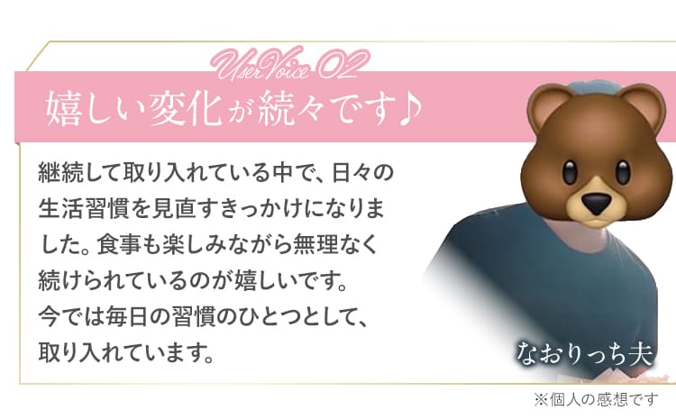 - 30代 女性 甘くて飲みやすかったです!無理なく続けて飲めそうです! ※個人の感想です。